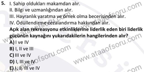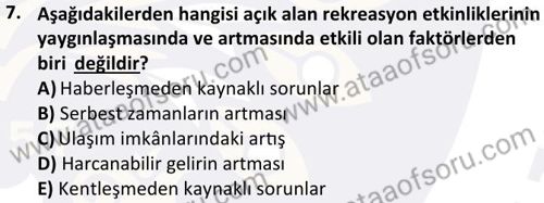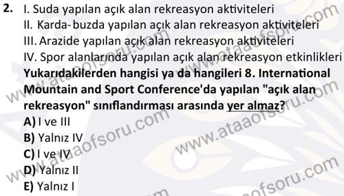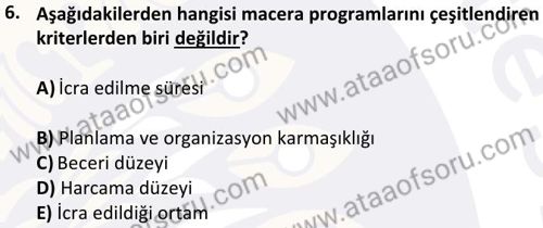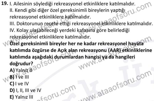 Açık Alan Rekreasyon Eğitimi Dersi 2024-2025 Bahar Dönemi Bütünleme Sınavı Çıkmış Sınav Soruları ve Çözümleri