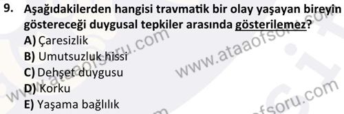 Acil Durum ve Afet Psikolojisi Dersi 2025-2026 Güz Dönemi Ara Sınavı Çıkmış Sınav Soruları ve Çözümleri