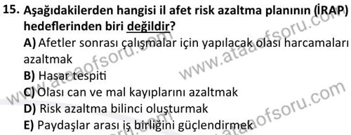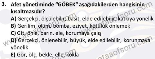 Acil Durum ve Afet Yönetimine Giriş Dersi 2024-2025 Güz Dönemi Bütünleme Sınavı Çıkmış Sınav Soruları ve Çözümleri
