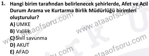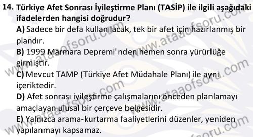Acil Durum ve Afet Yönetimine Giriş Dersi 2025-2026 Güz Dönemi Final Sınavı Çıkmış Sınav Soruları ve Çözümleri
