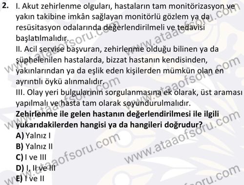 Acil Hasta Bakımı Dersi 2024-2025 Güz Dönemi Bütünleme Sınavı Çıkmış Sınav Soruları ve Çözümleri