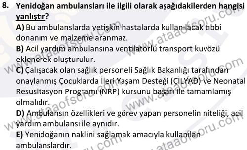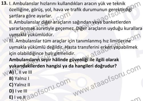 Acil Servis Araçları Eğitimi Dersi 2024-2025 Güz Dönemi Bütünleme Sınavı Çıkmış Sınav Soruları ve Çözümleri