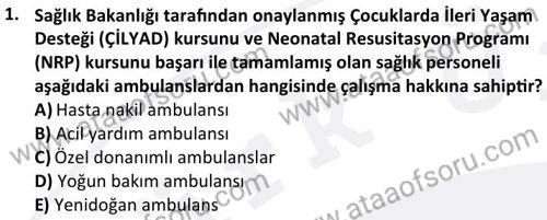 Acil Servis Araçları Eğitimi Dersi 2025-2026 Güz Dönemi Ara Sınavı Çıkmış Sınav Soruları ve Çözümleri