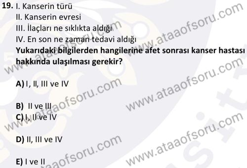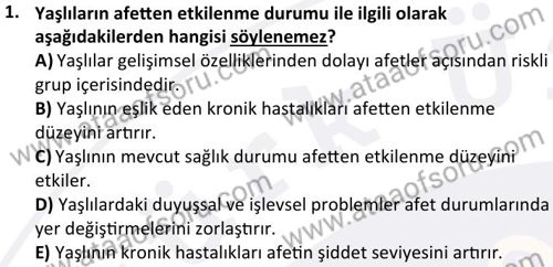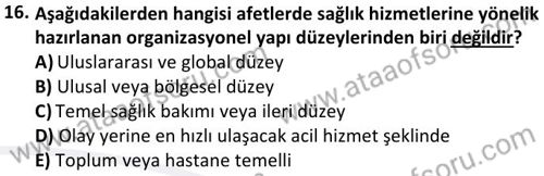 Afetlerde Halk Sağlığı Hizmetleri Dersi 2024-2025 Bahar Dönemi Bütünleme Sınavı Çıkmış Sınav Soruları ve Çözümleri