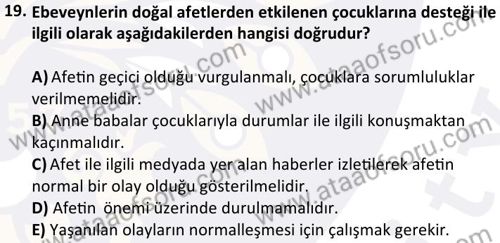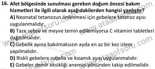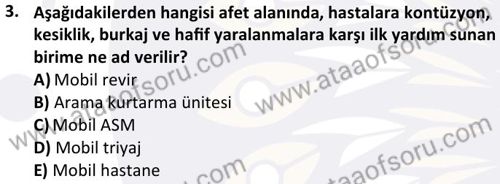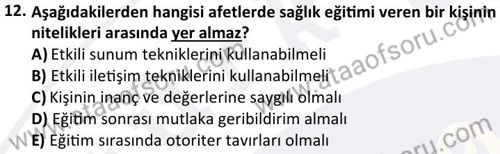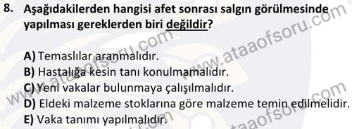 Afetlerde Halk Sağlığı Hizmetleri Dersi 2024-2025 Bahar Dönemi Final Sınavı Çıkmış Sınav Soruları ve Çözümleri