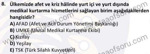 Afetlerde İlk ve Acil Yardım Yönetimi Dersi 2025-2026 Güz Dönemi Ara Sınavı Çıkmış Sınav Soruları ve Çözümleri