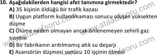 Afetlerde Risk ve Kriz Yönetimi Dersi 2017-2018 Bahar Dönemi Final Sınavı Çıkmış Sınav Soruları ve Çözümleri