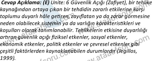 Afetlerde Risk ve Kriz Yönetimi Dersi 2021-2022 Bahar Dönemi Ara Sınavı Çıkmış Sınav Soruları ve Çözümleri