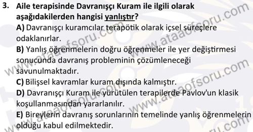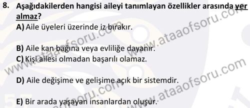 Aile Danışmanlığı Dersi 2024-2025 Bahar Dönemi Final Sınavı Çıkmış Sınav Soruları ve Çözümleri