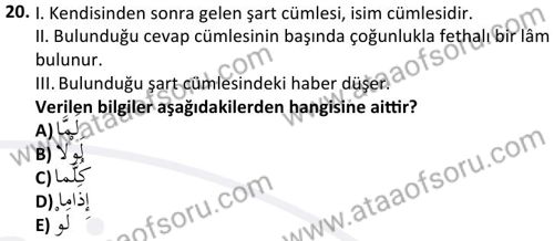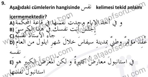 Arapça 4 Dersi 2024-2025 Bahar Dönemi Final Sınavı Çıkmış Sınav Soruları ve Çözümleri