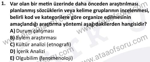 Araştırma Yöntem ve Teknikleri 1 Dersi 2025-2026 Güz Dönemi Ara Sınavı Çıkmış Sınav Soruları ve Çözümleri