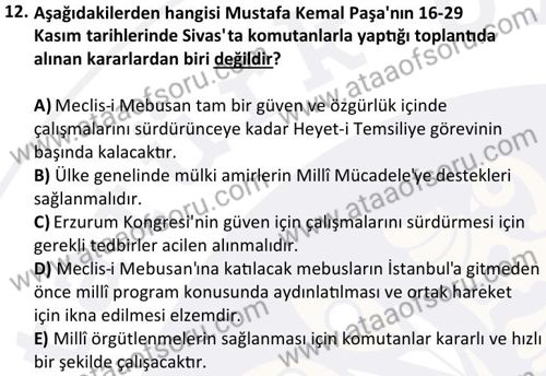 Atatürk İlkeleri ve İnkılap Tarihi 1 Dersi 2025-2026 Güz Dönemi Final Sınavı Çıkmış Sınav Soruları ve Çözümleri
