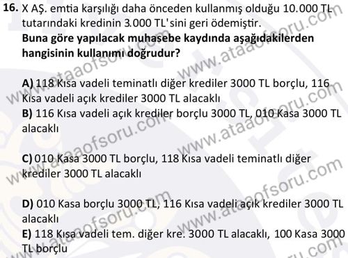 Banka Muhasebesi Dersi 2024-2025 Bahar Dönemi Bütünleme Sınavı Çıkmış Sınav Soruları ve Çözümleri