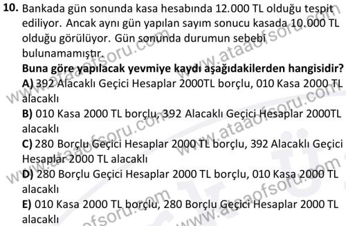 Banka Muhasebesi Dersi 2024-2025 Bahar Dönemi Final Sınavı Çıkmış Sınav Soruları ve Çözümleri