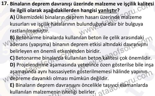 Bina ve Yapım Bilgisi Dersi 2025-2026 Güz Dönemi Final Sınavı Çıkmış Sınav Soruları ve Çözümleri