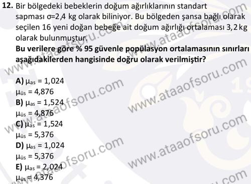 Biyoistatistik Dersi 2024-2025 Bahar Dönemi Bütünleme Sınavı Çıkmış Sınav Soruları ve Çözümleri