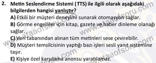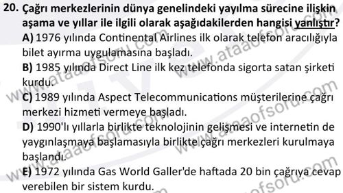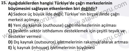 Çağrı Merkezi Yönetimi 1 Dersi 2024-2025 Güz Dönemi Bütünleme Sınavı Çıkmış Sınav Soruları ve Çözümleri