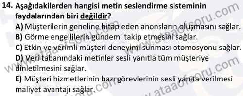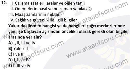 Çağrı Merkezi Yönetimi 1 Dersi 2025-2026 Güz Dönemi Ara Sınavı Çıkmış Sınav Soruları ve Çözümleri