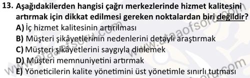 Çağrı Merkezi Yönetimi 2 Dersi 2024-2025 Bahar Dönemi Final Sınavı Çıkmış Sınav Soruları ve Çözümleri