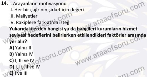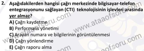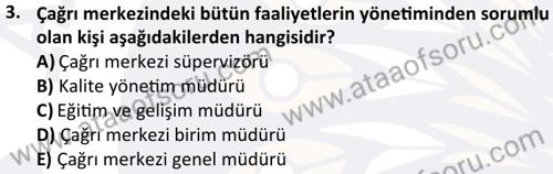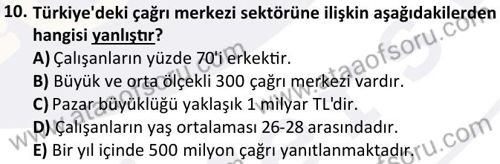 Çağrı Merkezi Yönetiminde Ölçme ve Değerlendirme Teknikleri Dersi 2024-2025 Güz Dönemi Bütünleme Sınavı Çıkmış Sınav Soruları ve Çözümleri
