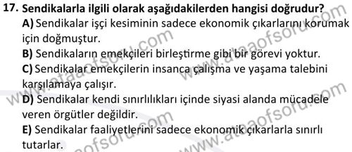 Çalışma İlişkileri ve Etik Dersi 2024-2025 Güz Dönemi Bütünleme Sınavı Çıkmış Sınav Soruları ve Çözümleri