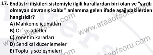 Çalışma İlişkileri ve Etik Dersi 2025-2026 Güz Dönemi Final Sınavı Çıkmış Sınav Soruları ve Çözümleri