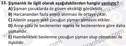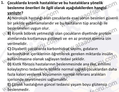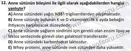 Çocuk Beslenmesi Dersi 2024-2025 Güz Dönemi Bütünleme Sınavı Çıkmış Sınav Soruları ve Çözümleri
