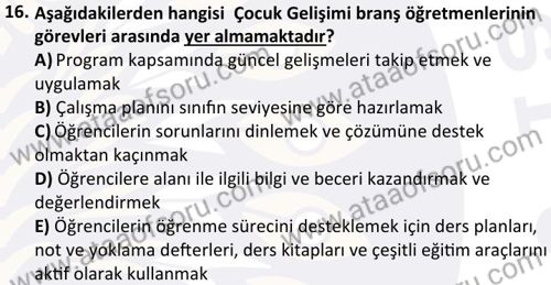 Çocuk Gelişimi Alan Uygulaması 1 Dersi 2023-2024 Güz Dönemi Bütünleme Sınavı Çıkmış Sınav Soruları ve Çözümleri