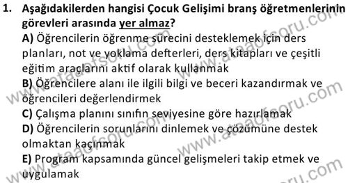 Çocuk Gelişimi Alan Uygulaması 1 Dersi 2025-2026 Güz Dönemi Final Sınavı Çıkmış Sınav Soruları ve Çözümleri