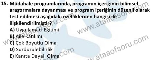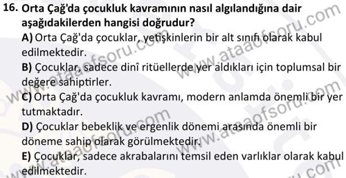 Çocuk Gelişimi Alan Uygulaması 1 Dersi Final Deneme Sınavı (15 Aralık)