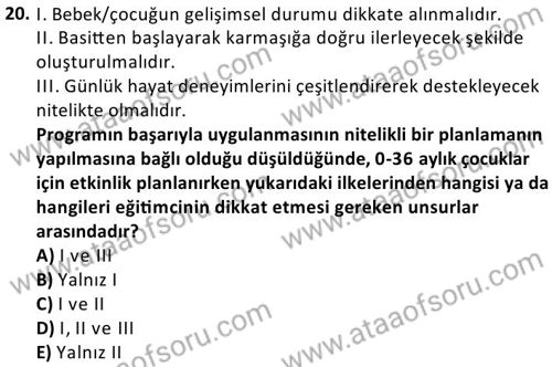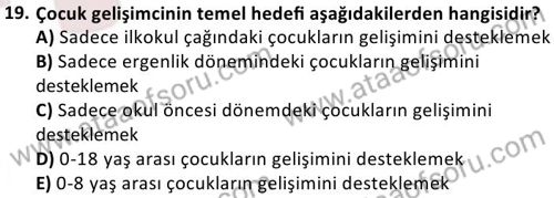 Çocuk Gelişimi Alan Uygulaması 1 Dersi Final Deneme Sınavı (22 Aralık)