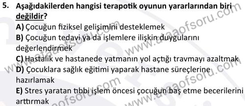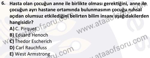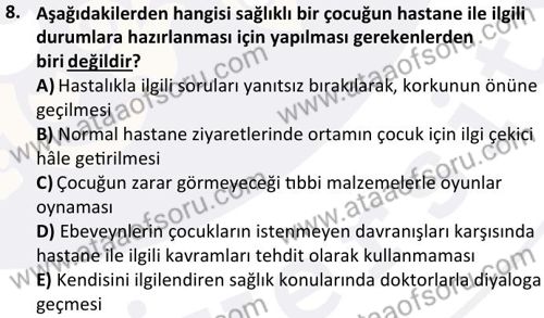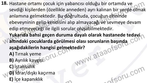 Çocuk, Hastalık ve Hastane Dersi 2025-2026 Güz Dönemi Ara Sınavı Çıkmış Sınav Soruları ve Çözümleri