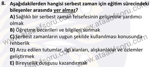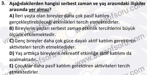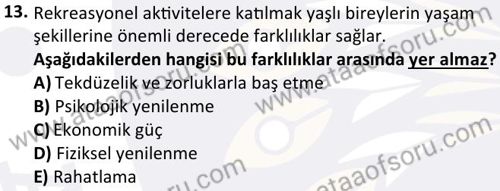Çocuk ve Yaşlılarda Rekreasyon Dersi 2023-2024 Güz Dönemi Ara Sınavı Çıkmış Sınav Soruları ve Çözümleri