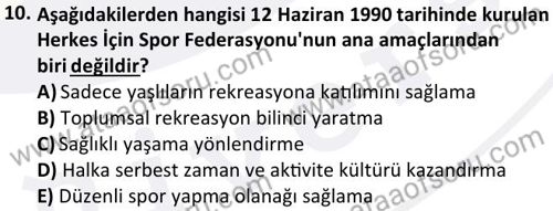 Çocuk ve Yaşlılarda Rekreasyon Dersi 2024-2025 Güz Dönemi Ara Sınavı Çıkmış Sınav Soruları ve Özetleri. Geçmiş dönemlere ait sınav sorularını çözerek sınavlarda gelebilecek soru kalıplarının ve benzer soruları yakalamanız daha kolay olacaktır. Çıkmış sınav soruları ile beraber konu anlatımı, ders özetleri ve online deneme sınavları ile sınavlara hazrılanabilirsin.
