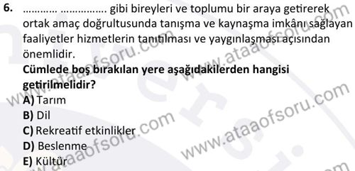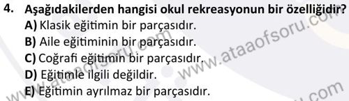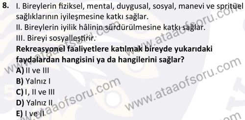Çocuk ve Yaşlılarda Rekreasyon Dersi Final Deneme Sınavı (1 Aralık)