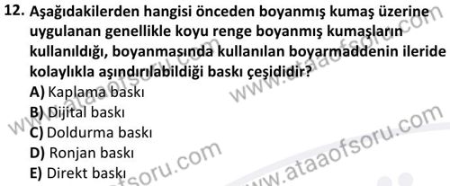 Dijital Tekstil Baskı Tasarımı Dersi 2024-2025 Güz Dönemi Bütünleme Sınavı Çıkmış Sınav Soruları ve Çözümleri