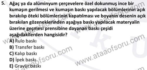 Dijital Tekstil Baskı Tasarımı Dersi 2025-2026 Güz Dönemi Ara Sınavı Çıkmış Sınav Soruları ve Çözümleri