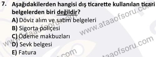 Dış Ticaret Finansmanı Dersi 2025-2026 Güz Dönemi Ara Sınavı Çıkmış Sınav Soruları ve Çözümleri