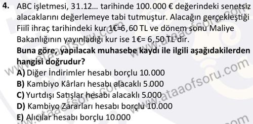 Dış Ticaret İşlemleri Muhasebesi Dersi 2024-2025 Bahar Dönemi Final Sınavı Çıkmış Sınav Soruları ve Çözümleri
