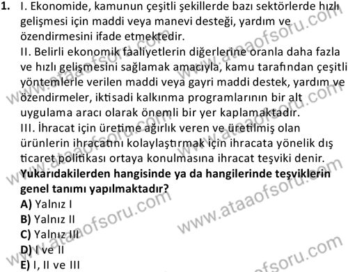 Dış Ticaret Teşvikleri Dersi 2020-2021 Yaz Okulu Sınavı Çıkmış Sınav Soruları ve Çözümleri