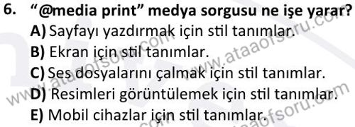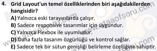Duyarlı Web Tasarımı Dersi 2024-2025 Bahar Dönemi Ara Sınavı Çıkmış Sınav Soruları ve Çözümleri