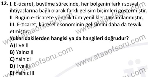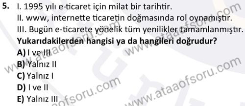 E-Ticaretin Temelleri Dersi 2024-2025 Güz Dönemi Ara Sınavı Çıkmış Sınav Soruları ve Çözümleri