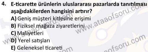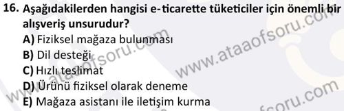 E-Ticaretin Temelleri Dersi 2024-2025 Güz Dönemi Ara Sınavı Çıkmış Sınav Soruları ve Özetleri. Geçmiş dönemlere ait sınav sorularını çözerek sınavlarda gelebilecek soru kalıplarının ve benzer soruları yakalamanız daha kolay olacaktır. Çıkmış sınav soruları ile beraber konu anlatımı, ders özetleri ve online deneme sınavları ile sınavlara hazrılanabilirsin.
