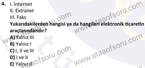 E-Ticaretin Temelleri Dersi 2024-2025 Güz Dönemi Bütünleme Sınavı Çıkmış Sınav Soruları ve Çözümleri