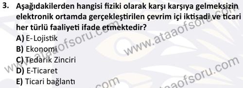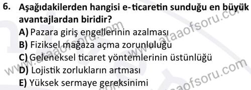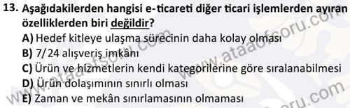 E-Ticaretin Temelleri Dersi 2024-2025 Güz Dönemi Final Sınavı Çıkmış Sınav Soruları ve Özetleri. Geçmiş dönemlere ait sınav sorularını çözerek sınavlarda gelebilecek soru kalıplarının ve benzer soruları yakalamanız daha kolay olacaktır. Çıkmış sınav soruları ile beraber konu anlatımı, ders özetleri ve online deneme sınavları ile sınavlara hazrılanabilirsin.