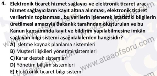 E-Ticaretin Temelleri Dersi 2024-2025 Güz Dönemi Final Sınavı Çıkmış Sınav Soruları ve Çözümleri