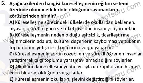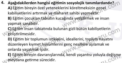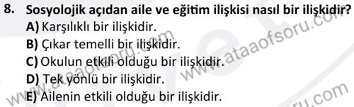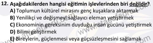 Eğitim Sosyolojisi Dersi 2024-2025 Bahar Dönemi Bütünleme Sınavı Çıkmış Sınav Soruları ve Çözümleri