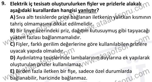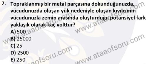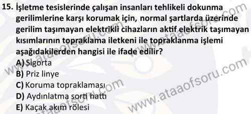 Elektrik ve Metal İşlerinde İSG Dersi 2024-2025 Güz Dönemi Bütünleme Sınavı Çıkmış Sınav Soruları ve Çözümleri