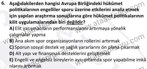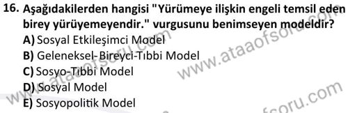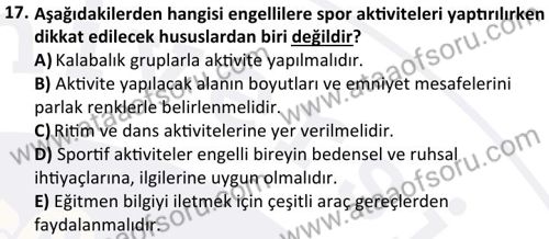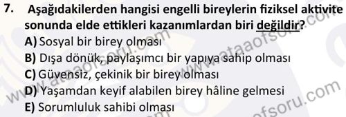 Engelliler İçin Beden Eğitimi ve Spor Dersi 2025-2026 Güz Dönemi Final Sınavı Çıkmış Sınav Soruları ve Çözümleri