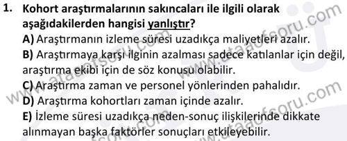 Epidemiyoloji Dersi 2024-2025 Bahar Dönemi Bütünleme Sınavı Çıkmış Sınav Soruları ve Çözümleri